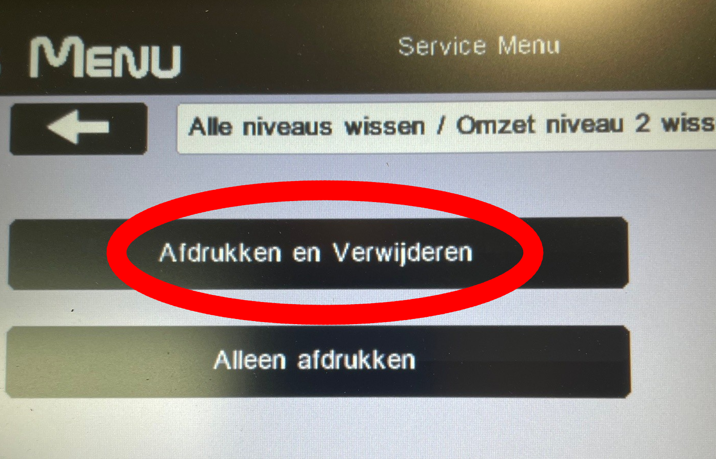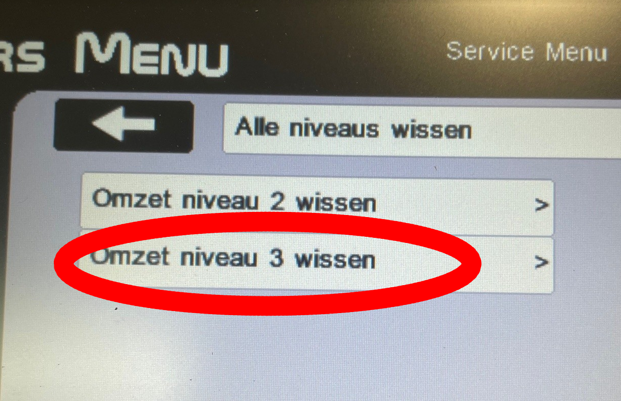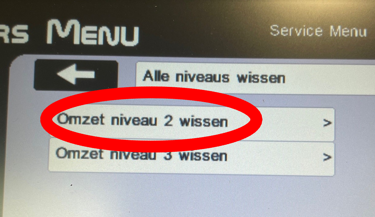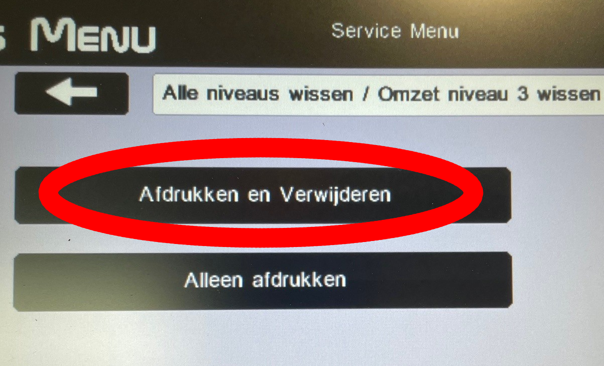 Nadat het eerste rapport is geprint klikt u op alle niveau's wissen. Klik vervolgens op Omzet niveau 2 wissen.